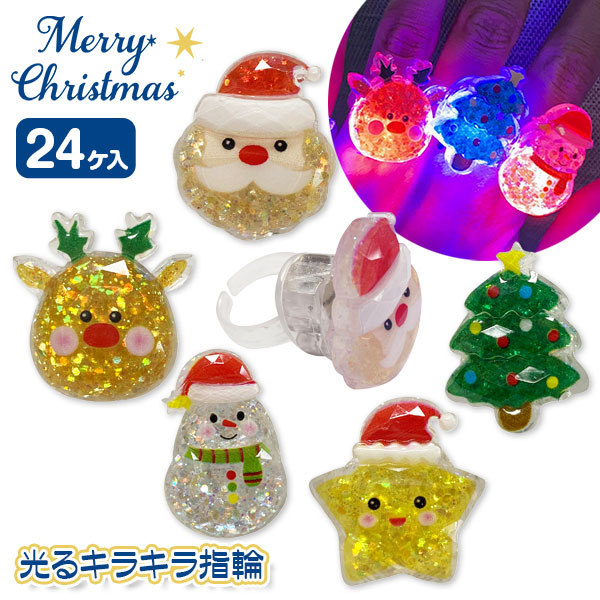 光るクリスマスキラキラ指輪 { クリスマス 玩具 光るおもちゃ }{ 縁日 祭り 子ども会 施設 } 夜店
