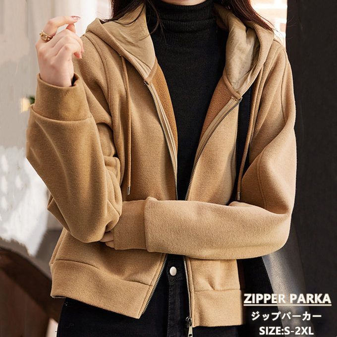 無地 冬服 カジュアル 厚手 暖かい 裏起毛 長袖 おしゃれ ショート丈 ジップアップ 冬 秋 ファスナー ゆったり 新作 秋服 冬物 防寒対策 着回し アウター フード付き パーカー ジャケ 運動着