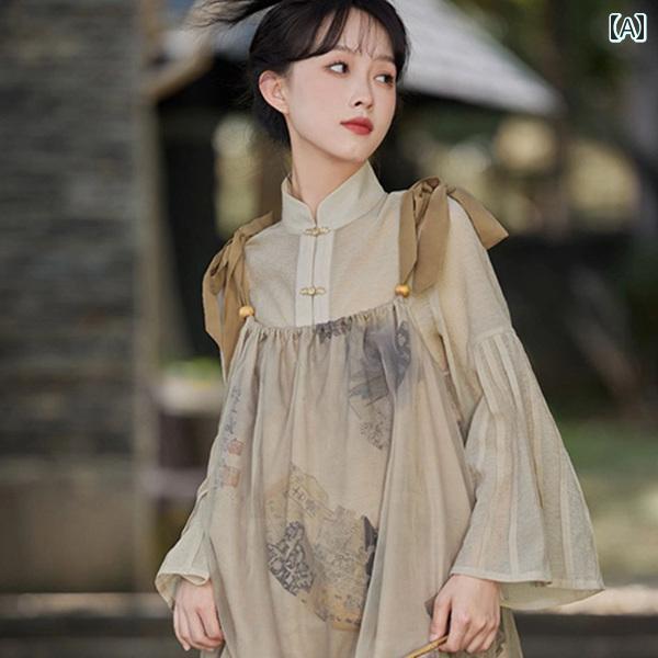 チャイナ風 レディース ファッション おしゃれ 上品 華やか 夏 レトロ 瞑想 フェアリー 精神 漢 肩ひも スカート セットアップ インナー
