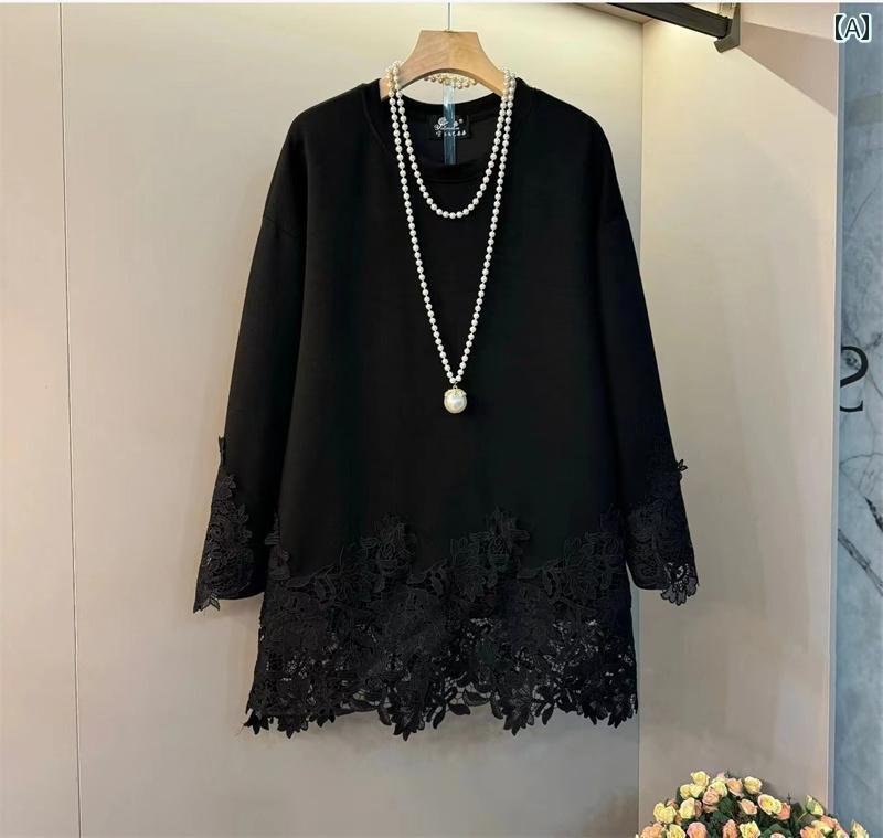 大きめサイズ レディース トップス カジュアル おしゃれ デート 女子会 普段使い レース 裾 長袖 Tシャツ 丈 シャツ シンプル スリム 体型カバー