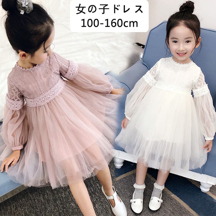 ワンピース 女の子 長袖 レース 春秋 韓国子供服 ベビー キッズ 学生 チュールスカート メッシュ 切り替え 演奏会 入学式 卒業式 発表会 七五三 ドレス おしゃれ 可愛い 人気 ピン