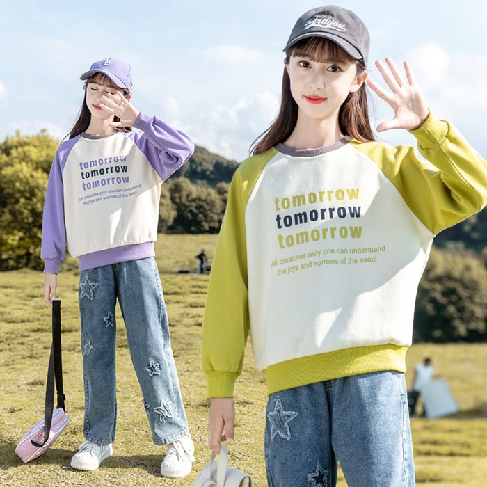 Tシャツ 女の子 春秋着 子供服 長袖 パーカー トップス 子ども服 キッズ 普段着 おしゃれ 学生 個性 スプライス カジュアル インナー 可愛い 110 120 130 140 150 1