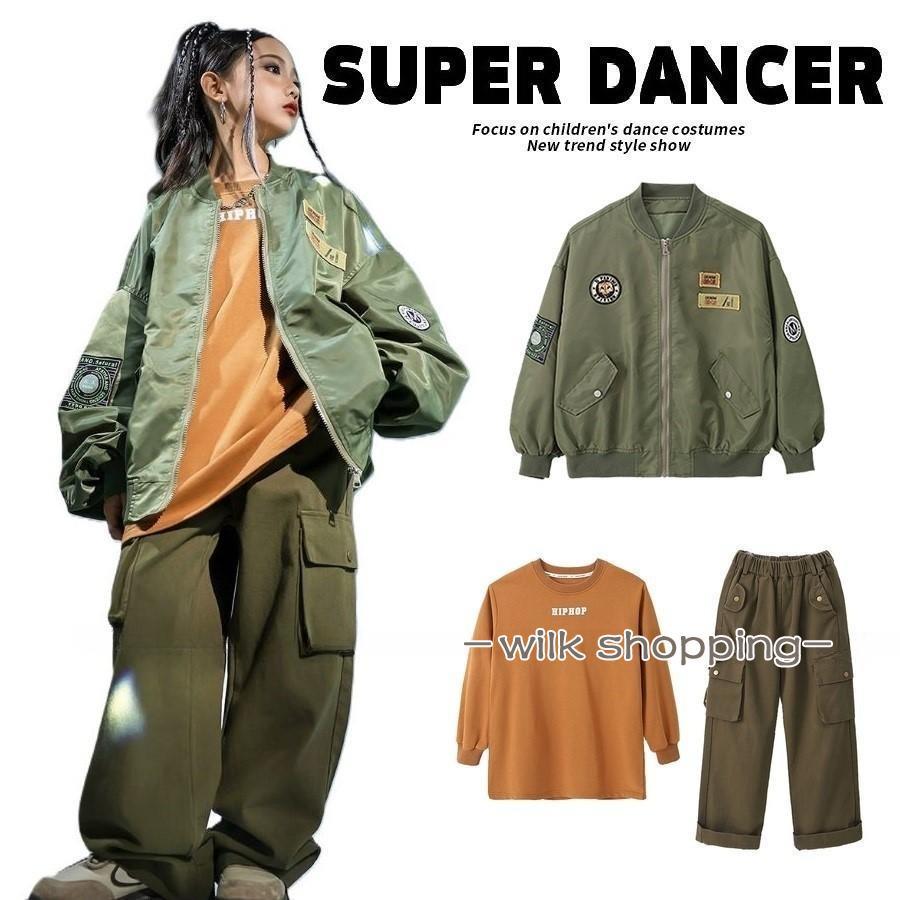 ミリタリージャケット MA-1 ダンス衣装 キッズ ヒップホップ 衣装 ブルゾン 子供ダンス服 韓国 K-POP カーキ キッズダンス衣装