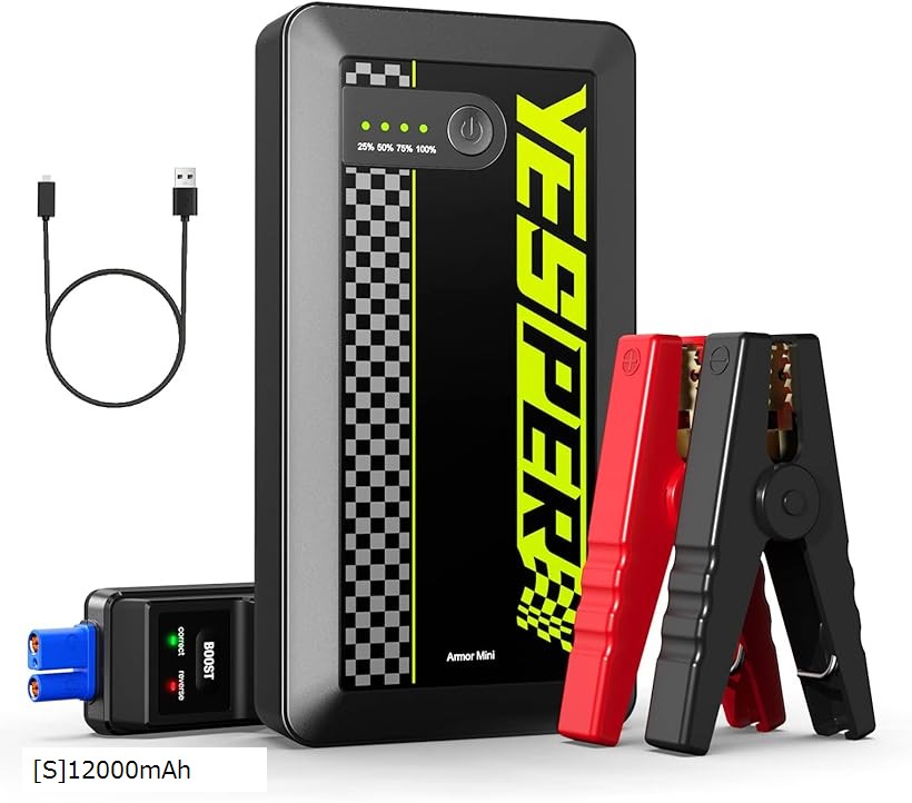 JS-377 ジャンプスターター 12V 車用ジャンプスターター 12000mAh大容量 わずか310gの重量 ピーク電流 最大6.0Lガソリン 4Lディーゼル車対応 1500A