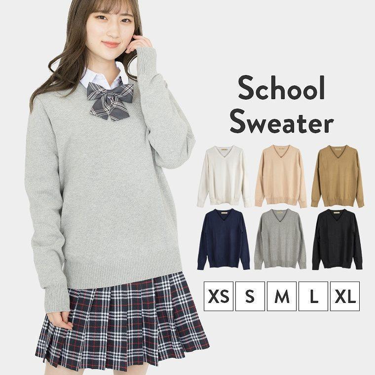 スクールセーター 女子 秋冬 制服 中学生 高校生 学生服 セーター 無地 綿100% vネック スクール ニット 洗える 学生 通学 人気 可愛い紺 紺色 レディース