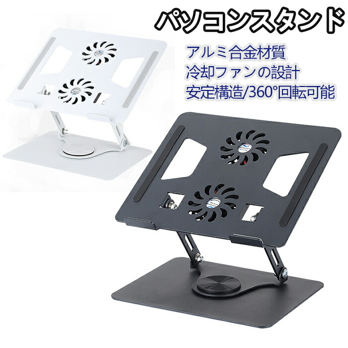 ノートパソコンスタンド 冷却ファン パソコンスタンド pcスタンド ノートpc スタンド pc台 折りたたみ アルミ合金製 360°回転可能 ノートパソコン 冷却 無段階角度 高さ調整可能 2フ 放熱