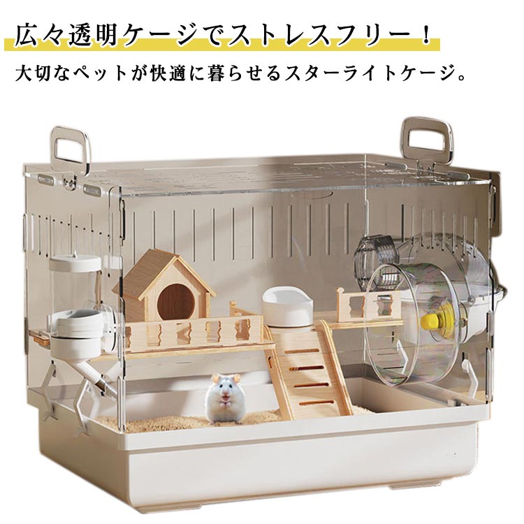爬虫類 広々 全面クリア スターライトケージ 大きめ ハムスター 透明 ゴールデンハムスター モルモット ハリネズミ 無垢材耐噛みハウス 餌入れ 回し車 ケージ 階段 お風呂 給水ボトル