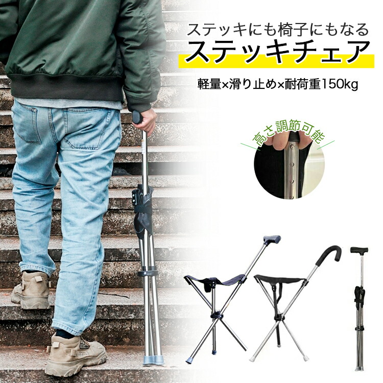 ステッキチェア 椅子になる杖 一本杖 一脚杖 ステッキ チェアー 祖父母 プレゼント 杖 おしゃれ 三脚 椅子 折りたたみ イス アルミ 軽量