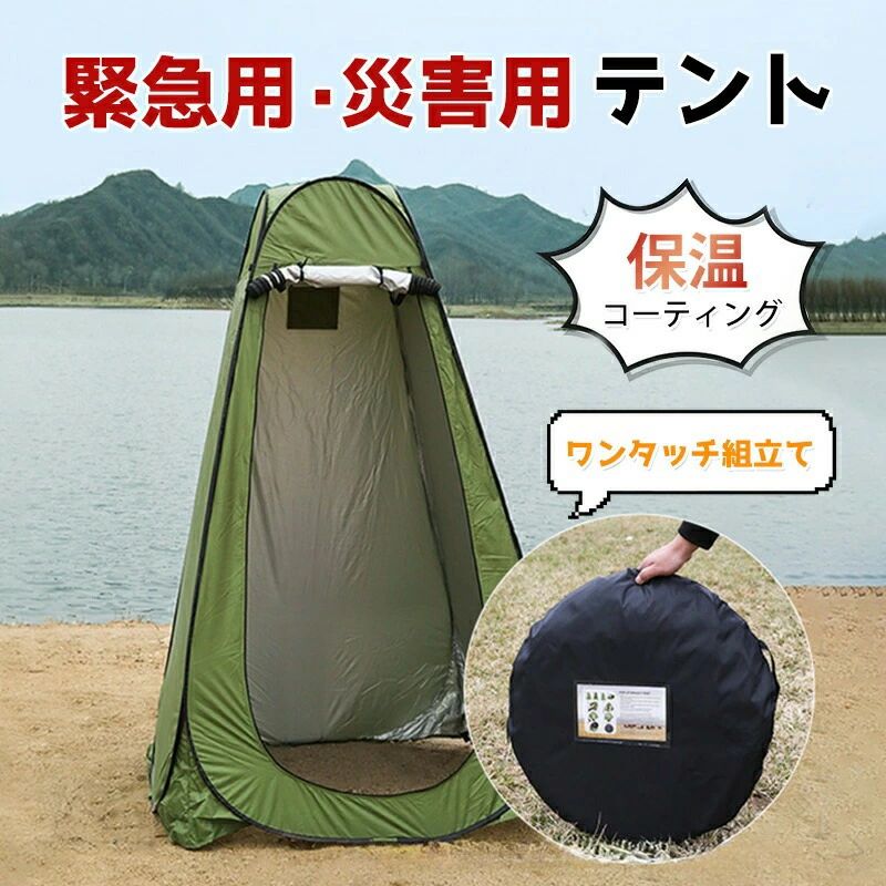 防災テント 着替えテント ワンタッチ組立て 簡易テント キャンプ用 救急用品 防災グッズ グリーン色 折りたたみ式 軽量 コンパクト収納可能 保温コーティング