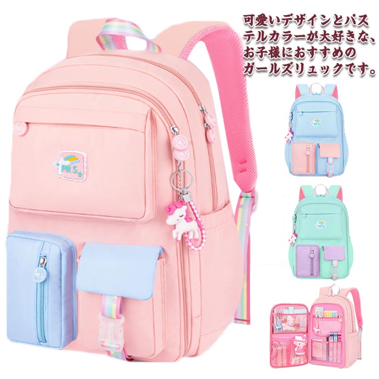 小学生 防水 飾り付き リュックサック 中学生 女の子 通学バッグ 高学年 大容量 撥水 キッズ スクールバッグ 軽量 多機能 女児 遠足 入学グッズ 入学祝い 旅行 校外学習