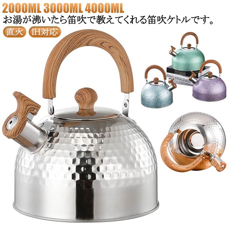 ケットル ステンレス IH対応 木柄ハンドル キッチン雑貨 広口 ケトル 2L ホイッスルケトル 湯沸かし 3L かわいい 大容量 おしゃれ やかん 音が鳴る キッチン用品 湯沸か 4L