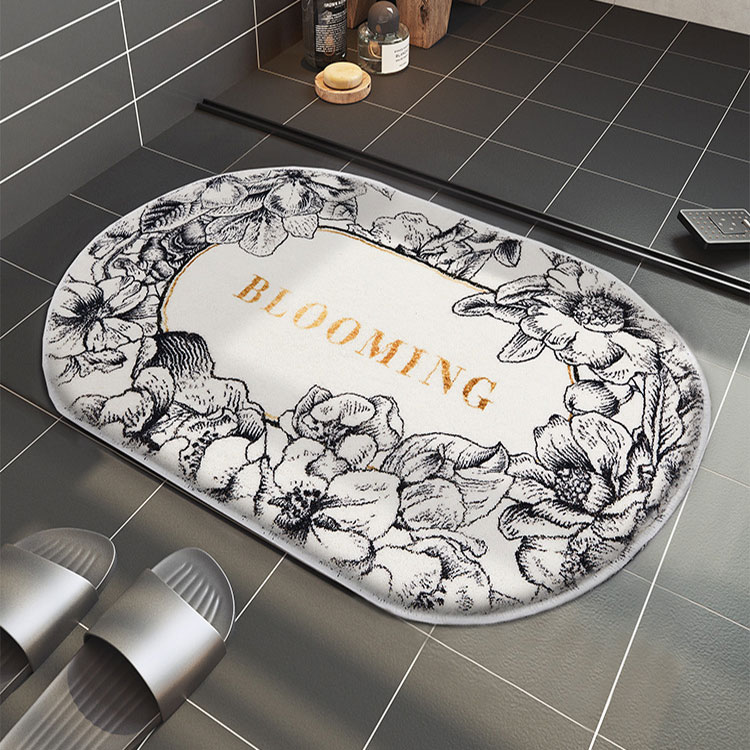 室内 マット 5color 北欧 お風呂マット 玄関マット 洗える 滑り止め ラグ 楕円形 速乾 足ふきマット ふかふか 吸水マット 玄関 屋内マット 花柄 キッチン リビングルーム 丸洗 浴室マット