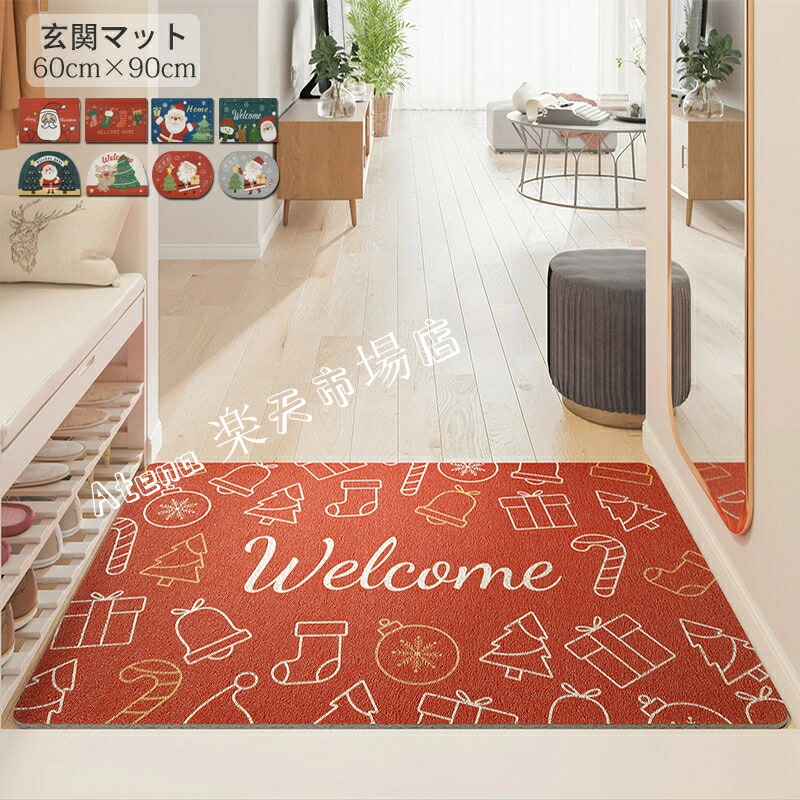 玄関マット 屋外 室内 クリスマス 飾り サンタ マット 60cm×90cm おしゃれ 滑り止め付き 泥落とし 泥除け 砂落とし 業務用 家庭用 室外 屋内 北欧 洗える ドアマット 置物