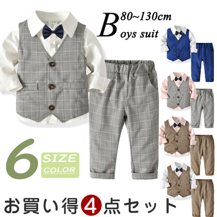 子供服 フォーマル スーツ 80 90 100 110 120 130 おしゃれ 蝶ネクタイ付き シャツ ベスト お宮参り 英国風 記念日 七五三 初節句 スーツ 男の子 おしゃれ 卒業式