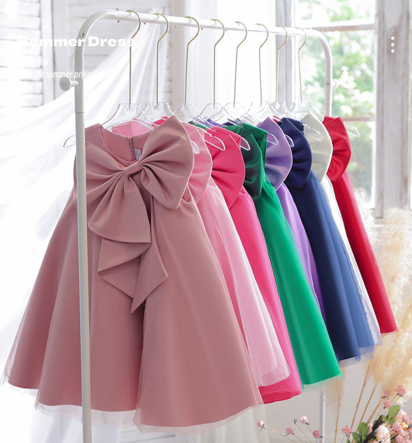 子供 ドレス ノースリーブ ミドル丈 Aライン 前に大きい蝶リボン カラフル15色 サテン チュール キッズ カラードレス 女の子 フォマール パーティー 発表会 演奏 結婚式