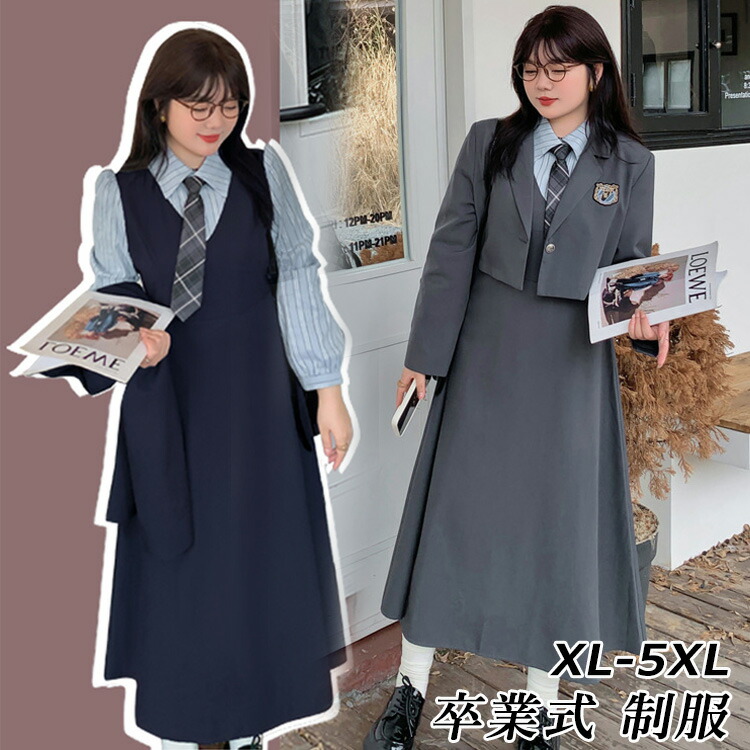 なんちゃって制服 セット 卒業式 スーツ 女の子 大きいサイズ 卒服 韓国 制服 ブレザー ゆったり 卒業 式 小学校 女子 高校生 入学式 2点 体型カバー ワンピース 膝丈 中学生