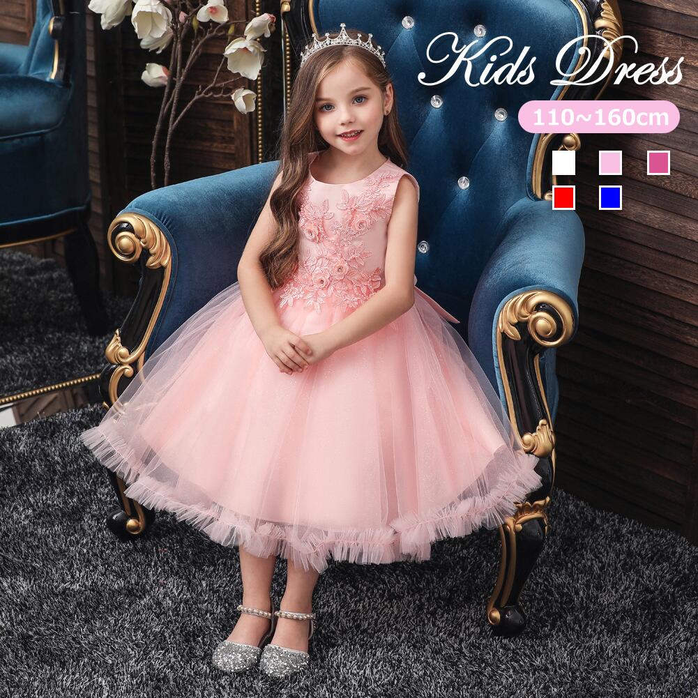子供ドレス ピアノ発表会 子供服 キッズ用ドレス 120-170cm ワンピース パーティードレス 子供用 花 タップリ 結婚式 発表会 入園式 七五三 ワンピースドレス べアトップ ワンピー 花童