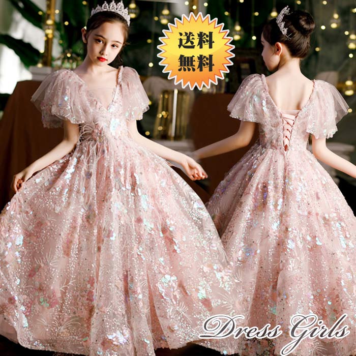 子供ドレス ロングドレス 女の子 ジュニア ピアノ 発表会 パーディー 演奏会 フォーマル 入園式 結婚式 ワンピース ピンク レッドシャンペン