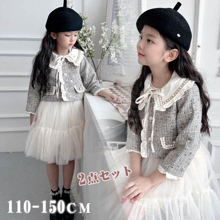 小学生 韓国風 キッズ ジャケット 子供 2点セット 上下セット セットアップ フォーマル チュール プレゼント ギフト ベビー おしゃれ かわいい ジャケット