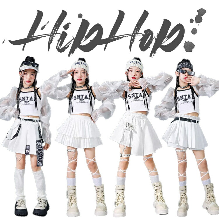 スカートセット ダンス キッズ 女の子 ホワイト へそ出し ダンス衣装 ティアードスカート ガールズ 白 スカート ダンスウェア 発表会 応援団 イベント ジュニア 普段着 jazz K- カッコイイ