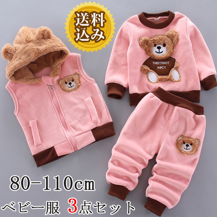 ベビー服 3点セット 秋冬 裏起毛 フード付き 子供スーツ キッズ おしゃれ 女の子 男の子 クマ カワイイ 暖かい カジュアル プレゼント 防寒着 新生児 春秋冬 長袖 子供服 韓国