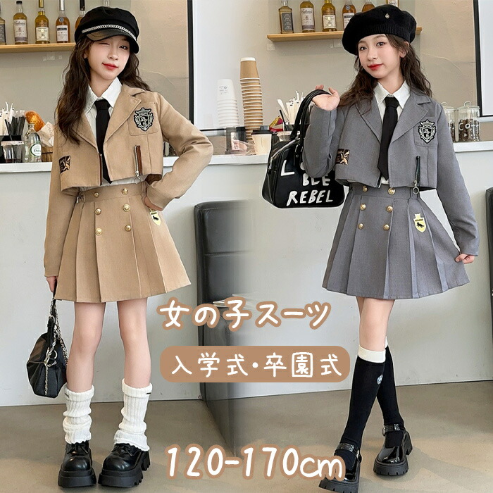 キッズ 女の子 制服風 スカートスーツ 入学式 卒業式 子供スーツ セットアップ 小学生 jk 制服 フォーマル スーツ ジャケット 2点セット スクール制服 学園風 スカート