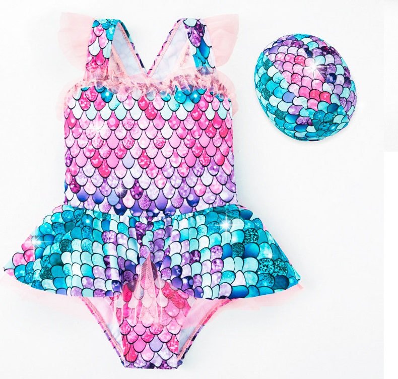 女児帽子付き水着キッズ スイミングウェアプール ワンピース水着 リトルマーメイド人魚姫キッズ ベビー キッズファッション 水着 マタニティ