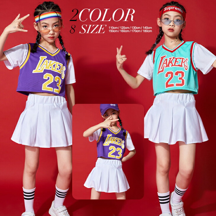 キッズダンス衣装 セットアップ 半袖 ヘソ出し スカート ダンス 衣装 チアダンス キッズ ヒップホップ 2点セット レッスン着 練習着 ジュニア チーム 舞台演出服 子供 女の子 ステージ イベント