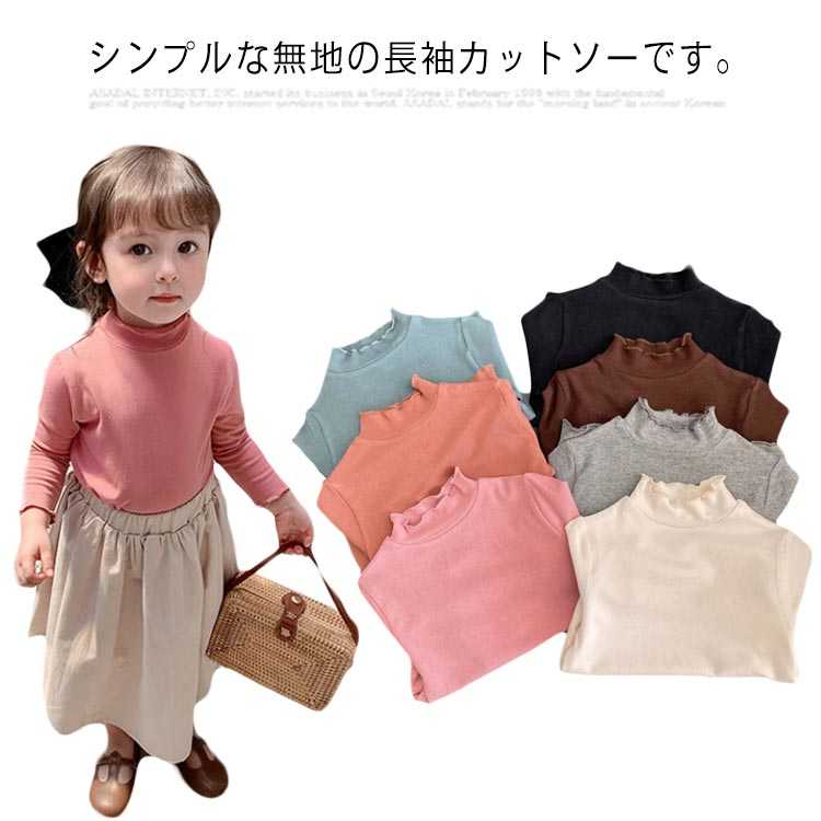 キッズ 長袖tシャツ 女の子 子供服 カットソー 綿 トップス ベビー服 フリル ハイネック 春秋 重ね着 おしゃれ 可愛い 無地 80 90 100 110 130 ガールズ シンプル 120