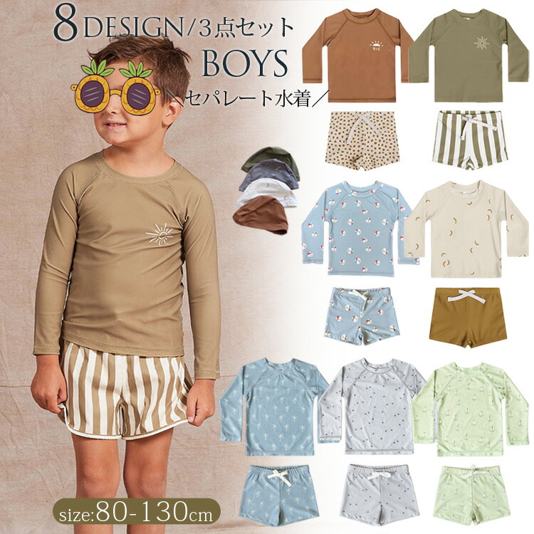 \新色入荷/選べる8色 3点セット キッズ ベビー 水着 長袖 ラッシュガード 夏 男の子セパレート 水着 上下セット 子ども 子供 動きやすい 水着 ジュニア 水遊び プール