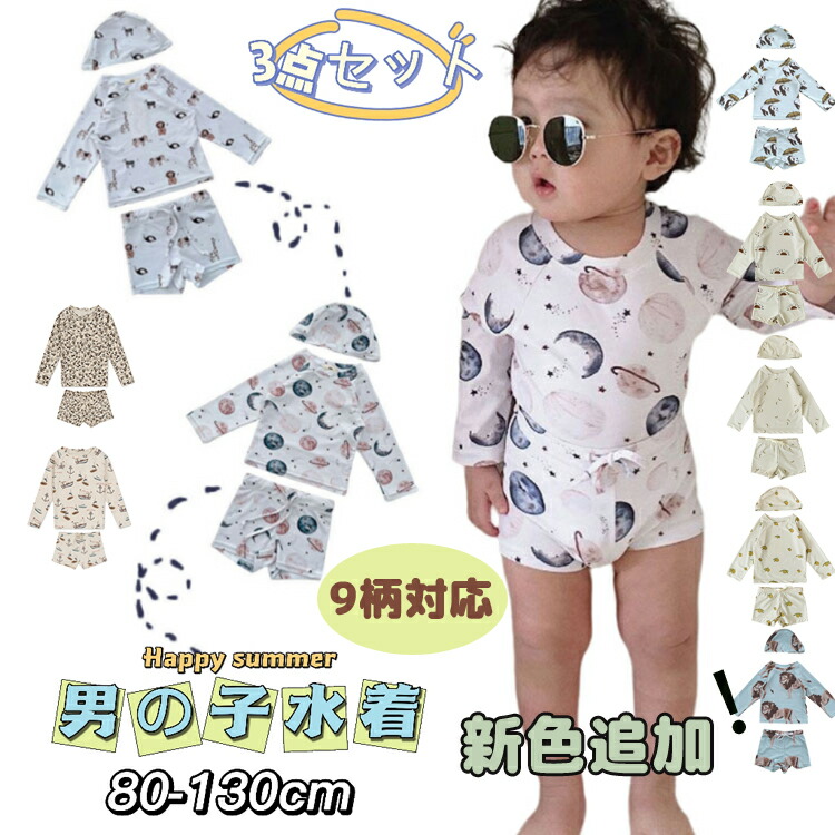 3点セット 男の子 みずぎ 上下セット ベビー 水着 長袖 ラッシュガード セットアップ 幼稚園 小学生 キッズ水着 ジュニア 子供 スクール水着 スイムウェア プール 可愛い 海辺 プレゼン 水遊び