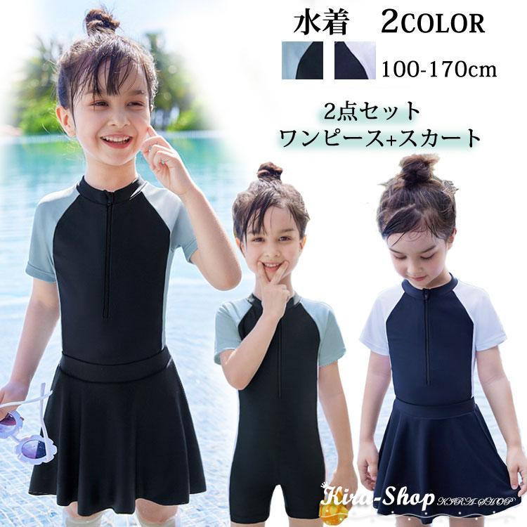 2点セット 女の子 水着 スクール水着 ワンピース スカート キッズ スポーティー オールインワン 子供 スイムウェア セパレート ジュニア ガールズ レデイース