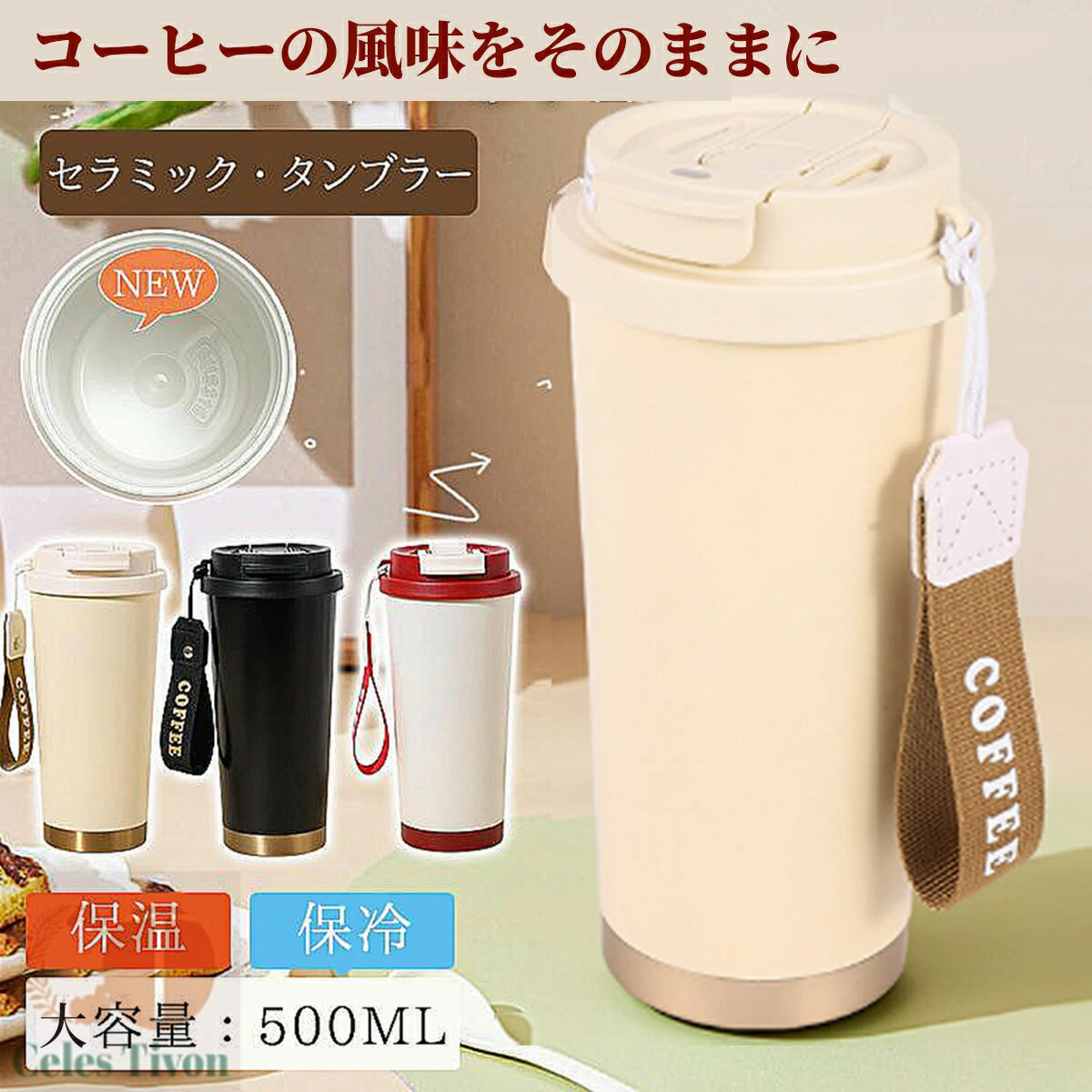 タンブラー セラミック セラミックコーティング 水筒 蓋付き マグボトル 保温 保冷 500M 持ち運び コーヒーカップ 真空断熱 車カップホルダー対応 保温保冷 車載せでき直飲み