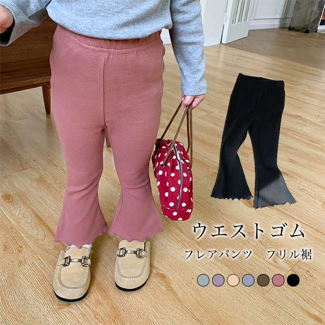 フレアパンツ キッズ ロングパンツ フリル裾 無地 軽量 伸縮性 通気性 ボトムス カジュアル ウエストゴム 柔らかい ゆったり シンプル 美脚 快適 春夏 通園 通学 女の子 ジュニア ワイ 子供用
