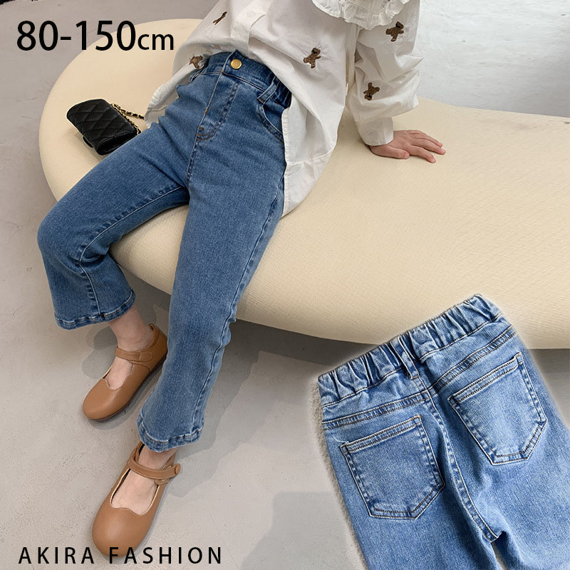 春新作 子供服 デニムパンツ ボトムス デニム ジーンズ ロングパンツ 長ズボン ストレッチ フレアデニムパンツ クロップド 女の子 ベビー キッズ ナチュラル 子ども 春秋 カジュアル