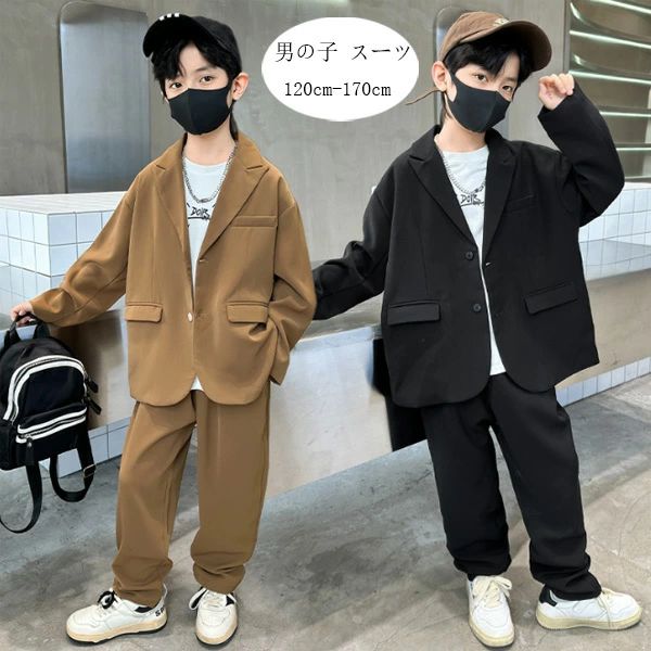 スーツ 2点セット 卒業式 受験用 七五三 発表会 130 長袖 韓国子供服 卒園式 ブレザー+長ズボン キッズ ブラック 170 ジュニアスーツ 無地 子供スーツ キャメ フォーマル