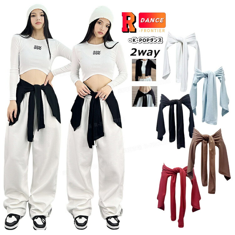 ダンス衣装 ショートカーディガン 2WAY着用 ジャズダンス 衣装 女性 ヒップホップスタイル 腰巻きアウター スポーツウエストバッグ ストリートダンス きれいめ カーゴパンツ飾り レディ レディース