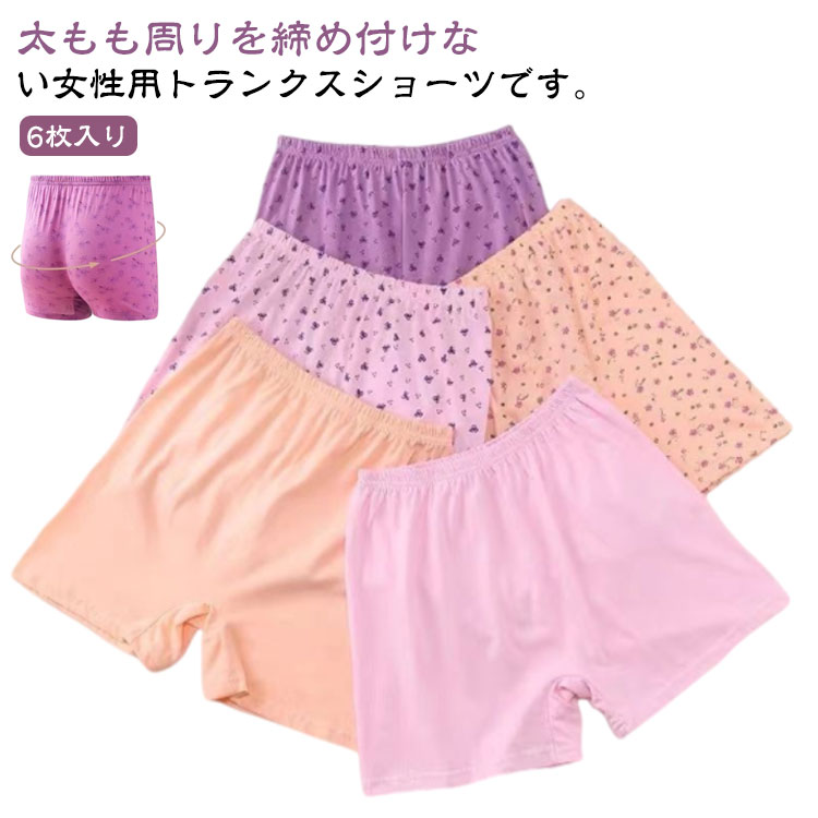 6枚入り 下着 女性用 トランクス パンツ 花柄 可愛い 深ばき ハイウエスト 綿 コットン ボックスショーツ トランクスショーツ ショーツ おやすみパンツ ボクサーパンツ ゆったり らくちん アンダ
