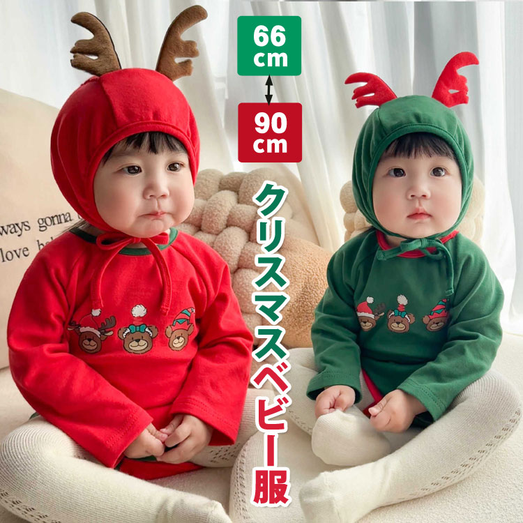 クリスマスモチーフベビー服 おしゃれでかわいい クリスマス雰囲気満点 キッズロンパース レッド グリーン ベビー服 赤ちゃん キッズ ロンパース 66/73/80/90