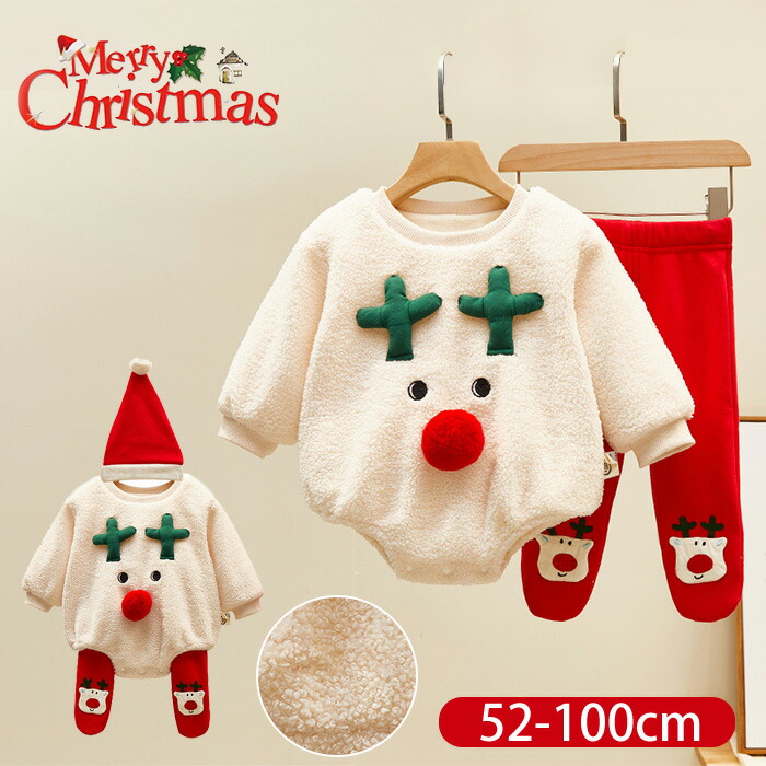 ベビー クリスマス ロンパース 裏起毛 帽子 長袖 ベビー服 赤ちゃん カバーオール キッズ コスチューム 新生児 出産祝い 写真記念撮影 サンタ風 サンタさん サンタ お祝い 誕生記念 プレゼ 衣装