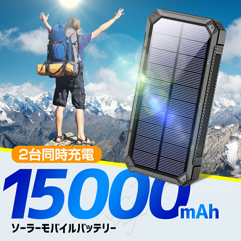 ソーラーバッテリー モバイルバッテリー 15000 大容量モバイルバッテリー スマホ充電器 スマホバッテリー ソーラーチャージャー 地震/災害/旅行/出張/緊急用/アウトドア活動