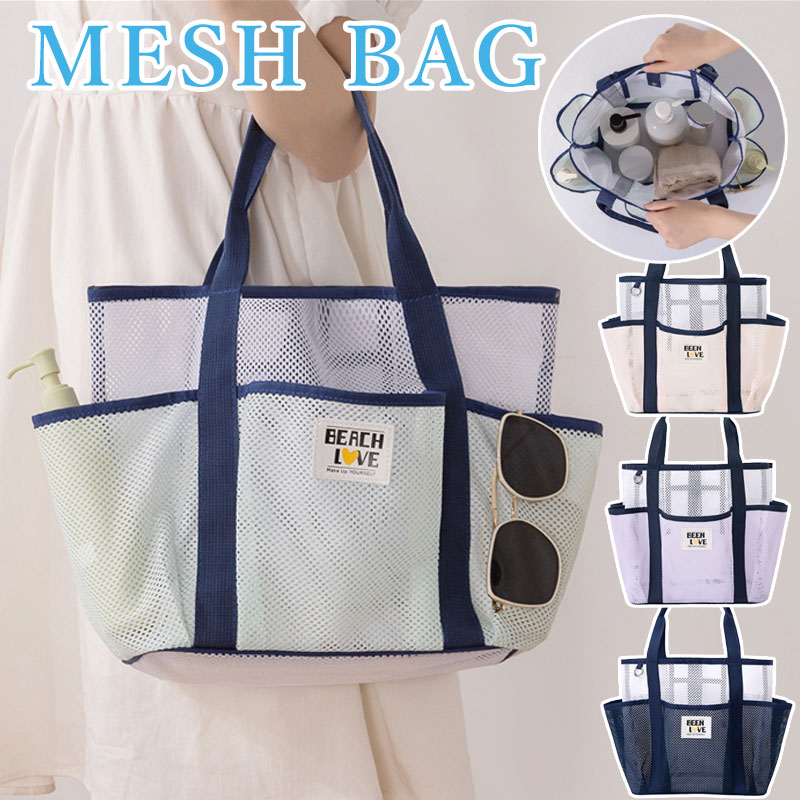 メッシュバッグ 外ポケット付き 大容量 超軽量 軽い 通気性 スパバッグ プール ビーチ 温泉 水泳 ジム 砂場 砂遊び 子ども タオル ボトル ハンドバッグ シンプル かわいい オシャ トートバッグ