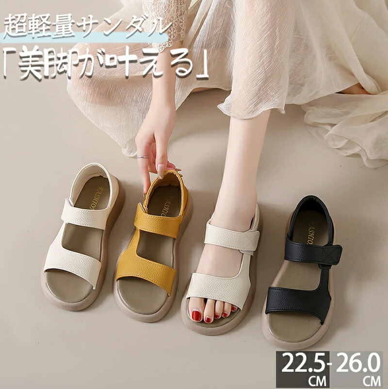 フラット サンダル レディースサンダル 厚底サンダル レディース ゴムストラップ 履きやすい 美脚 外反母趾 おしゃれ 軽量 カジュアル 滑りにくい マジックテープ 痛くない 快適 人気 涼感 通気性