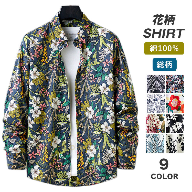 柄シャツ メンズ 長袖シャツ 花柄 綿100% カジュアル 総柄 大きサイズ 春 秋 総柄シャツ カジュアルシャツ 旅行 ビーチシャツ リゾート 羽織り 花柄シャツ 30代 40代 50代