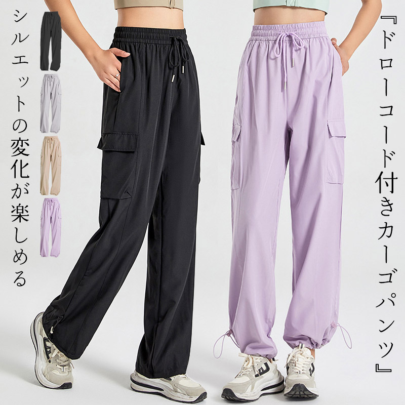 ヨガウェア ヨガパンツ ゆったり カーゴパンツ レディース ピラティスウェア 速乾 吸汗 ウエストゴム 調節ひも 裾 ドローコード 2WAY 薄手 ワンマイルウェア スポーツウェア ト イージーパンツ