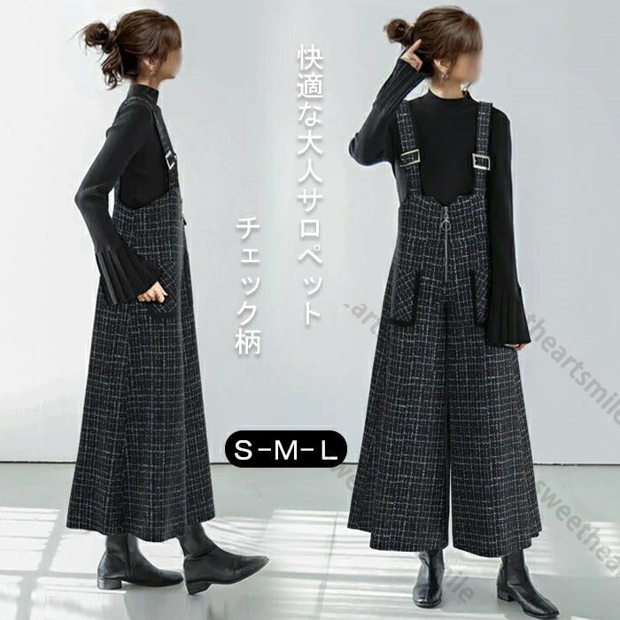 サロペット レディース オールインワン パンツ ゆったり ワイドパンツ 大人 チェック柄 ロングズボン 秋冬 通勤 オフィス ポケット付き 普段着 旅行 春 冬 ノースリーブ 仕事 秋