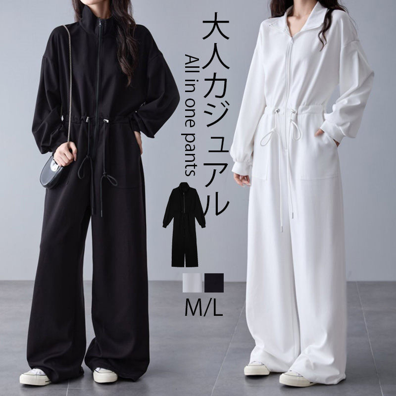 オールインワン つなぎ レディース 長袖 ジャンプ スーツ トップス ボトムス パンツ ロング オーバー ドロップショルダー オーバーオール ジャンプスーツ サロペット 長袖オー ロングパンツ