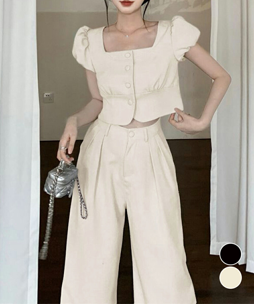 セットアップ春夏半袖トップスワイドパンツレディースファッション オールインワン サロペット